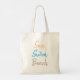 Tote minimalista malo con el texto sol, nadar, playa en colores pastel creando un accesorio de moda con tema de playa para boda, regalo de despedida de soltera o simplemente para un día divertido en la playa. Se puede personalizar para incluir tu propio texto o logotipo.