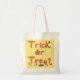 Estas divertidas bolsas de Halloween incluyen las palabras: Trick o Treat. Algunas de las letras de las palabras incluyen una escoba, piernas brujas, diseños de caramelos y una calabaza. Las letras son naranjas livianos delineados con un naranja rojo. La letra k está hecha de una escoba y piernas brujas con medias rayadas negras y naranjas. Debajo de las palabras se puede ver una muestra de dulces. El color de fondo es amarillo y se puede personalizar a cualquier color de su selección. Gracias por comprar CherylsArt en Zazzle.