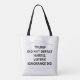 Houlder tote bag con un texto y un diseño de líneas que contiene una opinión política sobre la candidatura de Trump y Harris a la presidencia de Estados Unidos, diciendo "Trump no derrotó a Harris, la ignorancia de los votantes hizo", porque aunque Harris superó a Trump por la mayoría de los indicadores, más votantes aún votaron por Trump. Puede personalizar de los elementos del diseño para que se adapten a su gusto, incluyendo el texto y el color de las líneas.