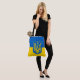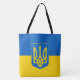 Tote bag with the flag of Ukraine, a blue and yellow flag with the Ukrainian coat of arms (emblem) with a trident in the center