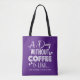 "Un Día Sin Café Es Como... Solo Kidding. No Tengo Idea". Imprimir. Este tote exhibe un diseño alegre y divertido que tiene un tratamiento artístico para alguien que ama el café. El color de fondo puede cambiarse a su preferencia deseada. Gracias por el apoyo y por visitar mi tienda - UniquelyDistinct. No dudes en transferir este diseño a otros productos de Zazzle.