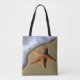 Sorprendente fotografía de playa, una estrella de mar naranja brillante en el borde del agua a punto de ser cubierta por una suave ola.