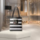Bolso De Tela Una monograma floral dorada | Rayas blancas y negr