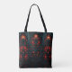 Bolso de mano de Ventana de Vidrio Emplomado Gótico. © Dark Heart Desires. Hay un diseño de ventana de vidrio emplomado gótico rojo y negro en este bolso de mano.