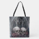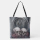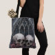 Ventanas góticas y Calaveras Tote Bag. © Dark Heart Desires. Una bolsa de té con ventanas góticas, calaveras y rosas mostrados en ella.