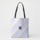Una bolsa de bonito con un diseño diagonal rayado en un lado, lilo plano en el otro. Personaliza tu primer monograma. Un toque fresco y luminoso para la temporada de verano.