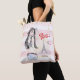 Trayecto personalizado Paris Pink Stripes Sketch Tote Bag con un chica y la Torre Eiffel. Personaliza con tu nombre o el de un amigo.