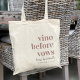 Da la bienvenida a tus amigas a tu fin de semana de despedida de soltera en el país del vino con estas bolsas de mano personalizadas chic y modernas. El diseño presenta "vino antes de votos" en tipografía clásica serif en rosa polvoriento con el nombre del evento u ocasión debajo en letra cursiva manuscrita. Personaliza con el nombre del lugar y/o el año debajo.