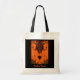 Esta bolsa de tote de Halloween presenta un diseño fractal abstracto de un espíritu vudú en tonos rojos, negros, verdes y azules. Sus cuernos son azules y está rodeado por una brillante nube gaseosa naranja. El texto dice: Trick o Treat. Se puede personalizar o quitar.