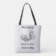 Funny tote bag with quote, "Wait for it...Patience is a virtue." Two mice, one impatient mouse caught in the trap and the other eating the cheese. Fun gift for a friend or family member who may need to learn a little patience. You can personalize it with their name.
