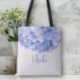 Watercolor Azul Hydrangea Pearl Bridal Party Tote Bag. Este moderno y elegante bolso de té para su fiesta nupcial presenta hidrangea de moda con tipografía de escritura de su elección. ¡El boda perfecto y divertido regalo de agradecimiento por su fiesta de novias!
