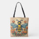 Lleva el encanto de la naturaleza dondequiera que vayas con la Whimsical Bee Tote Bag. Este encantador tote cuenta con un ilustracion vectorial central de una abeja capilar con alas pétalas florales, que se cierne sobre un campo de tulipanes. El diseño simplista en un color de fondo sólido captura de forma bonita la simbiosis de la naturaleza, convirtiéndolo en un accesorio perfecto para cualquier amante de la naturaleza.