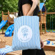 Bolso De Tela Whimsical Blue White Stripe Preppy Monogram