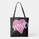 Lleva los abrazos y besos contigo con esta gran bolsa de tetas. Sencillo corazón rosa sobre fondo negro con besos y abrazos.
