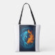 Dos brillantes peces koi giran en forma de yin-yang, sus colas inspiradas en la galaxia recorren olas suaves en una danza cósmica. Con unos azules y naranjas de ensueño, este diseño mezcla equilibrio, belleza y un toque de polvo de estrellas. Perfecto para los fanáticos del simbolismo koi, vibras celestiales