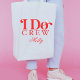 Reúne al equipo con estilo con este moderno diseño de "I Do Crew" - con texto rojo negrita y un brillante detalle del anillo de diamantes! Perfecto para fiestas de soltera, duchas de novias y preparación para el día de bodas, este diseño se puede personalizar con el nombre de la novia del novio para un toque muy amable.