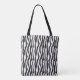 Este patrón de rayas de cebra en blanco y negro se ve genial en esta elegante bolsa de tote de impresión All Over. Diseño de Inge Lewis. Ideal para ir de compras, a la playa o a salir a cenar. Encontrará más elementos coincidentes en la tienda ingeinc.com.