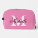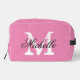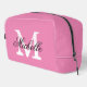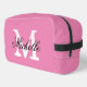 Bolso de viaje para inodoro para damas rosadas con monograma de moda. Plantilla de diseño de tipografía clásica. Personalizar con el nombre personalizado inicial. Impreso en dos lados.