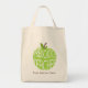 Un bolso para los profesores preescolares que ofrecen un ilustracion de una manzana verde con el texto blanco de gran tamaño "profesor preescolar" en blanco. Personalice el texto marrón abajo con su nombre.