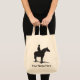 Este bolso tote presenta una silueta negra de un caballo de caza y un jinete y se puede personalizar con su nombre o el nombre de su caballo. Perfecto para llevar al establo o a los espectáculos.