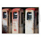 Fotografía de tres bombas de gasolina oxidadas del vintage. ¡Retro refresqúese!