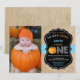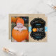 Invitación al primer cumpleaños de Boy Pumpkin con foto personalizado, naranja y azul, pizarra y fondo de burlap. Para una mayor personalización, haga clic en el botón "Personalizar" y utilice nuestra herramienta de diseño para modificar esta plantilla.