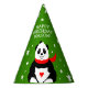 ¡Hacerle sentir como la estrella! Celebra las bofetadas de primer cumpleaños de tu hijo con estos caprichosos gorras de papel, que presentan un lindo panda gigante con un gorra de bolos británico y bufanda roja sobre un fondo verde estrellado. Diseño © W.H. Sim. Ver más en zazzle.com/expressionsoccasions