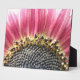 Esta impresionante placa muestra una detallada fotografía de primer plano de un girasol rosa bonito. La fotografía fue tomada con macrofotografía y muestra los pétalos rosados vibrantes y el detalle intrincado de esta hermosa flor.