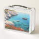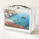 Bonita lonchera blanca con playa en las islas griegas viajan de vacaciones en Europa.