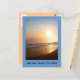 Fotografía profesional original, tranquila y romántica en color de la hermosa costa serena al atardecer tomada en la playa de Santa Bárbara, al sur de California. Un pájaro se encuentra en primer plano frente al sol. Hace un gran Pensamiento En Ti, Simpatía, Gracias, Te Extrañas, Desearías Estar Aquí, etc. postal. Añade fácilmente cualquier texto personalizado en la parte delantera o simplemente elimínalo.