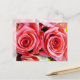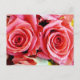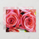 Esta postal contiene una fotografía de dos rosas rosas coloreadas rodeadas de otras flores. La parte trasera de la postal tiene la misma fotografía pero más clara para mostrar tu mensaje.