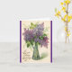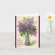 En esta tarjeta de bienvenida de cumpleaños aparece una bonita imagen vintage de un jarrón lleno de flores moradas. En la parte delantera de la tarjeta se lee: "Para desearte un cumpleaños feliz", y en el interior de la tarjeta se lee: "Que tu año por delante esté lleno de alegría y amor. Que te duelan con bendiciones del cielo arriba. ¡Feliz cumpleaños! ¡Una maravillosa tarjeta de cumpleaños para enviar a familiares o amigos!