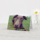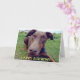 Fotografía de mi tarjeta de saludo de doberman rojo de rescate. El texto en la parte delantera dice "¡Feliz cumpleaños!" y el texto dentro dice "¡Espero que tengas un gran día!" El texto se puede personalizar.