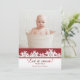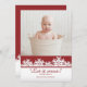 Una tarjeta fotográfica plana con un borde de copos de nieve de papel sobre un fondo rojo. Un diseño moderno y no religioso perfecto para todos en su lista de correo de vacaciones.