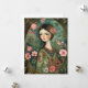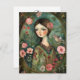 Tarjeta de mensaje en blanco. Retrato bonito de una bella dama. Flores y mariposas creando un borde floral. Oro y Verdes. Una tarjeta asombrosa para cualquier ocasión. En blanco para que escriba su propio mensaje. También disponible como descarga instantánea.