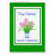 Tarjeta de saludo de Año Nuevo persa para el marido, con una olla azul y blanca de jacintos rosas en un borde verde y Feliz Noruz en azul, de una pintura acuarela de Judy Adamson. También está disponible una versión frontal personalizado de este diseño y puede personalizar el mensaje interno de esta tarjeta si lo desea.