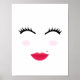 El chica bonito pincha y los labios imprimen una poster en un estilo minimalista que se ve bien enmarcado en la habitación de una niña.