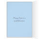 Hermoso conejito blanco de Pascua con chick y flores en la soleada tarjeta azul cielo. El texto puede ser personalizado para Semana Santa o Cumpleaños. Los conejos simbolizan la longevidad, la abundancia y la buena fortuna.