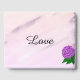 Flores violetas de bonito con un lavado de acuarela violeta de color crema violeta. Personalice con los nombres de la novia y el novio y el boda de citas en la portada. El Libro de invitados está escrito delante del libro, y el Amor está escrito al dorso del libro en escritura negra. Nuestra Historia de Amor está escrita a un lado. Diseño original de obras de arte de TamiraZDesigns.