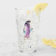 Este vaso para bebidas tiene una dama de bonito con el pelo negro usando un vestido rosado y sosteniendo una bufanda azul del Antiguo Egipto por delante y por detrás.