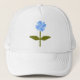 Este gorra floral de bonito presenta una imagen digital de una margarita con un tallo verde con dos hojas verdes sobre ella y pétalos de color azul claro y oscuro. Este es un diseño simple pero hermoso. El gorra es de color blanco, pero también hay otras combinaciones de colores con este diseño.