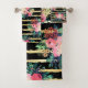 moda de hueca color agua jardinería pintada a mano diseño floral, elegantes obras de arte botánico verde verde azulado y pinceladas de pincel dorado rayas, llenas de color rosa melocotón, rosa bubblagum, amarillo, rojo, naranja y blanco, romántico diseño floral primaveral y florido, sobre un fondo de tendencia en color negro y dorado. Este estilo original, alegre, de moda, femenino, vintage, botánico, es perfecto para el uso diario, la decoración casera, las celebraciones y la decoración temática especial del día.