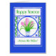 Tarjeta de saludo de Año Nuevo persa, 'Over the Miles', con una olla azul y blanca de jacintos rosas en un borde azul y Feliz Noruz en verde, de una pintura acuarela de Judy Adamson. También está disponible una versión frontal personalizado de este diseño y puede personalizar el mensaje interno de esta tarjeta si lo desea.
