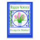 Tarjeta de saludo de Año Nuevo persa, para compañeros de trabajo, con una olla azul y blanca de jacintos rosas en un borde azul y Feliz Noruz en verde, de una pintura acuarela de Judy Adamson. También está disponible una versión frontal personalizado de este diseño y puede personalizar el mensaje interno de esta tarjeta si lo desea.