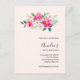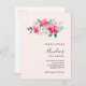 Invitación de cumpleaños con una impresionante imagen acuarela. Bonita decoración floral con colores rosa y rosa pastel entre hojas y estribillos verdes.