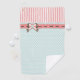 Toalla de golf de la dama de bonito hecha en un huevo azul con puntas de polka blanca, con una banda de coral y rayas blancas, en la parte superior de la toalla. Los gráficos de una bonita cinta de vieiras y una proa, se encuentran entre los dos patrones.