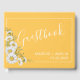 Bonito diseño personalizado de libro de visitas de boda características acuarela de color blanco esquina sobre fondo amarillo daffodil con bloques de texto de personalizable blanco en fuentes modernas