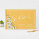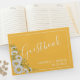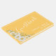 Bonito diseño personalizado de libro de visitas de boda características acuarela de color blanco esquina sobre fondo amarillo daffodil con bloques de texto de personalizable blanco en fuentes modernas
