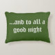 Un Navidad lanza almohada del color de un bonito verde árbol de Navidad, con "...y a todos una buena noche" en un guión hermoso y nevado blanco. También tenemos este diseño al revés con fondo blanco y letras verdes, así como versiones en blanco y rojo de las bayas y nieve. Las palabras pueden cambiarse por las suyas si lo prefieres. Esta está acondicionada en algodón lavable, pero hay otras opciones de tela a precios diferentes.