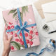 Hermoso envoltorio de regalo de Navidades rosados, papel perfecto para envolver, hacer artesanías, desguazar y hacer ciclismo. Envoltura festiva rosa, flores y bayas.